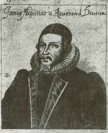 L'umanista Jacopo (o Giacomo) Aconcio (che adottò anche lo pseudonimo di Riccamati), nato ad Ossana (Val di Sole, in provincia di Trento) verso il 1492, compì studi universitari di giurisprudenza e di fisica, diventando in seguito notaio in Trento, ma nel 1556 entrò al servizio, come segretario, del cardinale Cristoforo Madruzzo (1512-1578), referente imperiale a Milano.