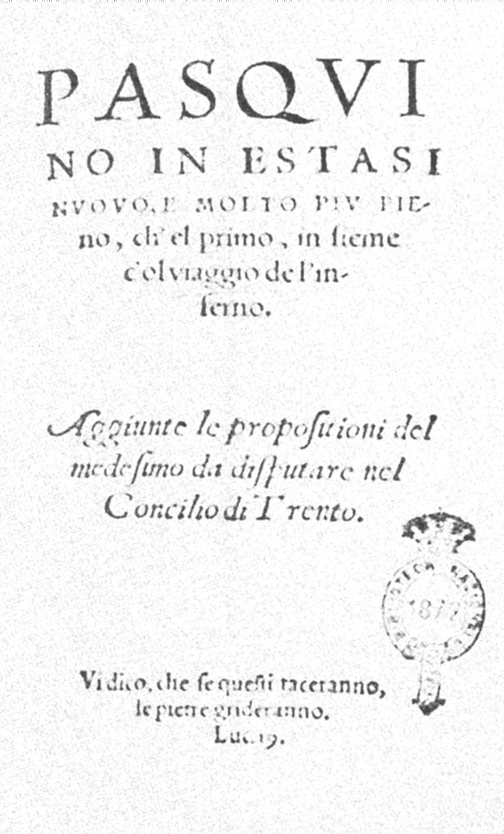 C. allora decise di fuggire, assieme a Camillo Renato, a Losanna, in Svizzera, dove insegnò retorica fino al 1546. Probabilmente a Losanna, nel 1543 C. completò la prima edizione (la seconda è del 1546) del suo Pasquino in estasi (Pasquillus extaticus), una feroce satira anticlericale e antipapale di sapore riformatore ed erasminiano, che ebbe uno straordinario successo in Italia e nell'Europa protestante.
