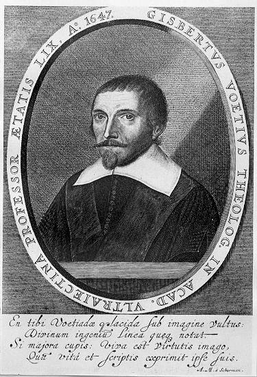 Il teologo calvinista Gisbertus Voetius, nato a Heusden, vicino a Utrecht, in Olanda nel 1588, studiò all'università di Leida, diventando dapprima predicatore a Vlijmen nel 1611 e poi ricoprendo lo stesso ruolo nel suo stesso paese natale nel 1617. Nello stesso periodo, V. si allineò teologicamente alle posizioni calviniste di Franz Gomar, ed ebbe un ruolo importante nel concilio di Dort (Dordrecht) del 1617-1618, convocato per discutere, o meglio per condannare, le posizioni arminiane.