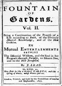 Nel 1663 L. incominciò a frequentare il reverendo Pordage e nel 1670, dopo la morte del marito, con lui fondò a Bradfield il circolo teosofico dei Filadelfi (The Philadelphians) [in seguito Società dei Filadelfi per la promozione della pietà e della filosofia divina (The Philadelphian Society for the Advancement of Piety and Divine Philosophy)] diventandone la profetessa. Infatti nello stesso 1670, L. ebbe, per ben tre volte, una visione di una dama, che si definiva la Vergine Sapienza (Sophia). In seguito annotò le sue esperienze mistiche nel suo diario, dal titolo A Fountain of Gardens (una fontana di giardini), dove tracciò le regole del circolo (dette Leggi del Paradiso dal titolo di uno dei suoi numerosi libri) il cui scopo era di "promuovere il Regno di Dio migliorando la vita, insegnando la moralità più eccelsa e facendo valere il dovere della fratellanza universale, della pace e dell'amore".